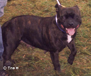 Utställning med Staffeklubben I dag är det utställning igen, en engelsk domare är inbjuden till Bååthuset där utställningen var. 4 av Walles kullsyskon var där. Som på utställningen i Gränna så var det Walles bror "Atomkraft Woo Tan Clan" som vann klassen. Walle kom 2:a och ytterligare en bror "Atomkraft Wee Willie Winkle" (Folke) kom 3:a. Walle tyckte domaren var läbbig och ville inte alls vara kvar i ringen, hu, vilken pärs att försöka ställa upp en hund som gör allt för att sticka ifrån dej... inget jag rekommenderar :0) SVENSKA STAFFORDSHIRE BULL TERRIER KLUBBEN, INOFFICIELL UTST. 14/10-01 BÅÅTHUSET (Walle ca 9,5 mån) Engelsk domare. Kritik: Black Brindle dog, Top Size, Good Coat, Strong head, Good width of muzzle. Good ears, Quality bone, Good legs and feet, good mouth, Good overall balance, Good quarters, Nice bend of stiffle. Med denna kritik placerade sig Walle som 2:a med HP i sin klass (slagen av sin bror Woo Tan Clan) :0) ![]() Här är Walles syster Atomkraft White Magic Witch "Åsa",hon och Walle är väldigt lika tycker jag. ![]() Atomkraft White Magic Witch "Åsa", och Atomkraft Single Malt "Harriet". ![]() Nej, jag vill inte!!! Walle och jag på utställning, och Walle tycker att domaren är jätteläbbig, så han vill inte alls ställa upp sej, suck och, stökelistök. Foto: Ulla Gravlund ![]() Atomkraft Woo Tan Clan Walles snygga bror som hittills har placerat sej före Walle på dom två utsällningar där dom mötts. ![]() D'Esparreguera at Piuretanos Dynamite Walles mamma "Greta" Det är en glad prick det! /Tina |